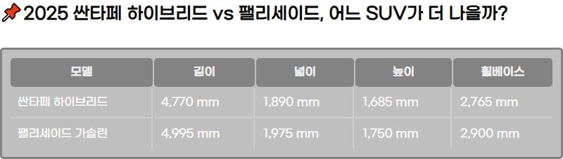 ์๋์ฐจ๋ฅผ ์ ํํ ๋ ๊ฐ์ฅ ์ค์ํ ๊ธฐ์ค ์ค ํ๋๋ ์ฐ๋น์ ์ ์ง๋น์ ๋๋ค. ํนํ ์ฐ๊ฐ ์ฃผํ๊ฑฐ๋ฆฌ๊ฐ 2๋ง km๊ฐ ๋๋๋ค๋ฉด ์ฐ๋น ํจ์จ์ ์ค์ํ ์์๊ฐ ๋ฉ๋๋ค. ์ด์ ๋ฐ๋ผ 2025๋ ๋ชจ๋ธ๋ก ์ถ์๋ ์ผํํ ํ์ด๋ธ๋ฆฌ๋ ์บ๋ฆฌ๊ทธ๋ํผ์ ํฐ๋ฆฌ์ธ์ด๋ ๊ฐ์๋ฆฐ ํ๋ ์คํฐ์ง ๋ ๋ชจ๋ธ์ ๋น๊ตํด๋ณด๊ฒ ์ต๋๋ค. ๋ ์ฐจ๋ ๋ชจ๋ ํ๋์๋์ฐจ์ ๋ํ์ ์ธ ๋ํ SUV์ด์ง๋ง, ์ฐ๋น, ์ฐจ๋ ํฌ๊ธฐ, ์ฃผ์ฐจ ํธ์์ฑ ๋ฑ์์ ํฐ ์ฐจ์ด๋ฅผ ๋ณด์ ๋๋ค.