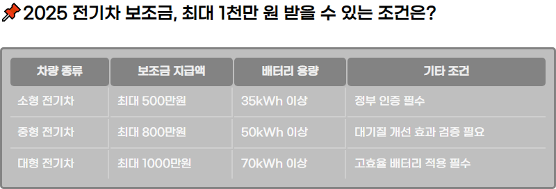 2025 ์ „๊ธฐ์ฐจ ๋ณด์กฐ๊ธˆ, ์ตœ๋Œ€ 1์ฒœ๋งŒ ์› ๋ฐ›์„ ์ˆ˜ ์žˆ๋Š” ์กฐ๊ฑด์€?