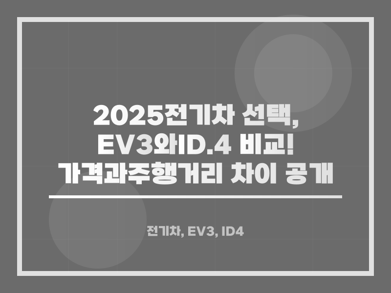 ์ ๊ธฐ์ฐจ ์ ํ์ ์์ด ๊ฐ์ฅ ์ค์ํ ์์ ์ค ํ๋๋ ์ฃผํ ๊ฑฐ๋ฆฌ์ ๊ฐ๊ฒฉ์ ๋๋ค. ํนํ 2025๋ ์ ์ต์ ๋ชจ๋ธ์ธ EV3์ ID.4๋ ๊ฐ๊ฒฉ๊ณผ ๊ธฐ๋ฅ์์ ํ์คํ ์ฐจ๋ณ์ ์ ๋ณด์ด๊ณ ์์ด ๋ง์ ์๋น์๋ค์ด ๊ณ ๋ฏผํ๊ณ ์์ต๋๋ค. ๋ ๋ชจ๋ธ์ ๋น๊ตํ๋ฉด์, ๊ฐ๊ฒฉ ์ฐจ์ด, ์ฃผํ ๊ฑฐ๋ฆฌ, ๋ฐฐํฐ๋ฆฌ ์ฉ๋, ๊ทธ๋ฆฌ๊ณ ์ฐจ๊ธ์ ๊ณ ๋ คํ ์ต์ ์ ์ ํ์ด ๋ฌด์์ธ์ง ์ดํด๋ณด๊ฒ ์ต๋๋ค.