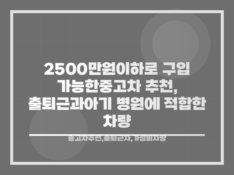 ์์ธ์์ ์ถํด๊ทผ๊ณผ ์๊ธฐ ๋ณ์ ๋ฐฉ๋ฌธ์ด ์ฃผ๋ ์ฉ๋๋ผ๋ฉด, ์ฐจ๋ ์ ํ์์ ํนํ ์ ๊ฒฝ ์จ์ผ ํ ๋ถ๋ถ๋ค์ด ๋ง์ต๋๋ค. ์์ฐ์ 2500๋ง์ ์ดํ๋ก ์ค์ ํ์ผ๋ฉฐ, ๊ฒฝ์ ์ฑ ๋์ ์ฐจ๋์ ์ฐพ๊ณ ์ ํฉ๋๋ค. ์ค๊ณ ์ฐจ ์์ฅ์์ ์ด ์์ฐ์ ๋ง๋ ๊ฐ์ฑ๋น ์ข์ ๋ชจ๋ธ๋ค์ ์ด๋ป๊ฒ ์ฐพ์ ์ ์์์ง ์ดํด๋ณด๊ฒ ์ต๋๋ค.