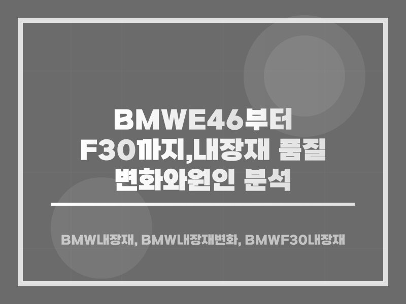 BMW๋ E46๊ณผ E39 ๋ชจ๋ธ์์ ๊ณ ๊ธ ๋ด์ฅ์ฌ๋ฅผ ์ฌ์ฉํ์ง๋ง, F30 ๋ชจ๋ธ๋ถํฐ ๋ด์ฅ์ฌ ํ์ง ๋ณํ๊ฐ ์์์ต๋๋ค. ์๊ฐ ์ ๊ฐ๊ณผ ์นํ๊ฒฝ ์ ์ฑ ๋ฑ์ผ๋ก ์ธํ ๋ณํ์ ๊ทธ ๋ฐฐ๊ฒฝ์ ์ดํด๋ด ๋๋ค. ์๋์ฐจ ์ ๊ณ์์์ ๋ด์ฅ์ฌ ๋ณํ์ ๋ํ ์ต์ ์ ๋ณด๋ฅผ ํ์ธํ์ธ์.