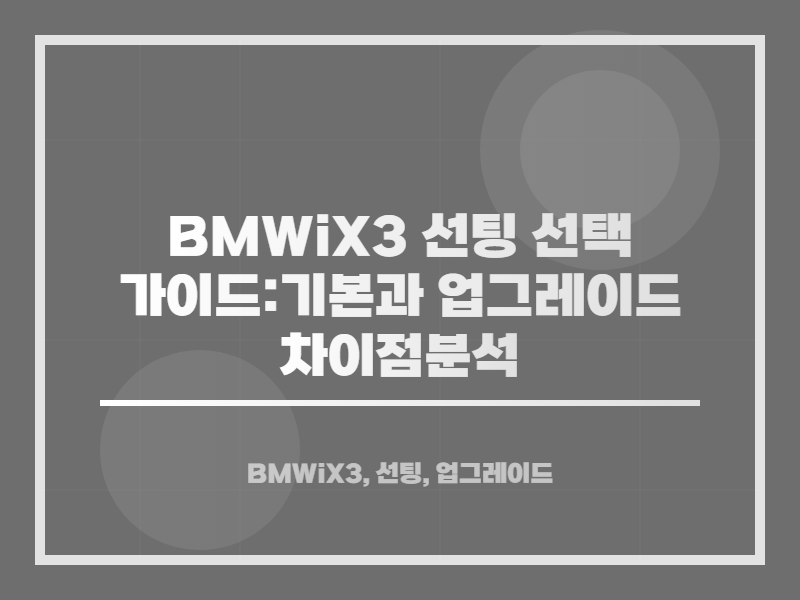 BMW iX3๋ฅผ ๊ตฌ์ ํ๋ ค๋ ์๋น์๋ค์๊ฒ, ์ฐจ๋์ ์ ํ ์ ์ ํํ๋ ๊ณผ์ ์ ์ค์ํ ๊ฒฐ์ ์ ๋๋ค. ์ ํ ์ ๋จ์ง ๋ฏธ์ ์ธ ์์๋ฟ๋ง ์๋๋ผ ์ฐจ๋ ๋ด๋ถ ํ๊ฒฝ์ ์พ์ ํ๊ฒ ๋ง๋ค์ด์ฃผ๋ ์ค์ํ ๊ธฐ๋ฅ์ ํฉ๋๋ค. ์ฌ๋ฌ ๊ฐ์ง ์ ํ ์ต์ ์ค์์ ์ด๋ค ๊ฒ์ ์ ํํ ์ง ๊ณ ๋ฏผํ๋ ๋ถ๋ค์ ์ํด, ์ด ๊ธ์์๋ BMW iX3์ ๊ธฐ๋ณธ ์ ํ ์ต์ ๊ณผ ์ ๊ทธ๋ ์ด๋ ์ต์ ์ ๋น๊ตํ์ฌ, ์ฐจ์ด์ ๊ณผ ์ ๊ทธ๋ ์ด๋๊ฐ ํ์ํ ๊ฒฝ์ฐ์ ๋ํ ์ ๋ณด๋ฅผ ์ ๊ณตํ๊ณ ์ ํฉ๋๋ค. ๐๐