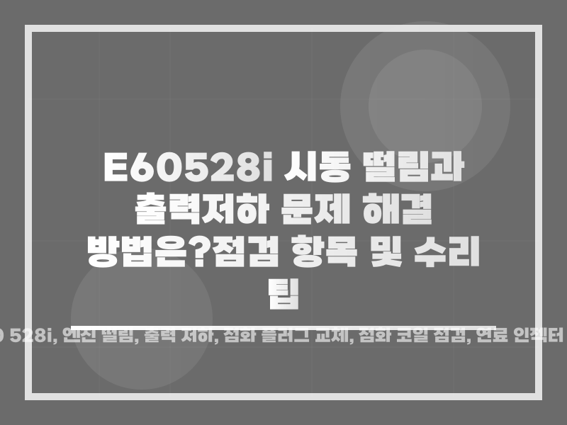 E60 528i ์‹œ๋™ ๋–จ๋ฆผ๊ณผ ์ถœ๋ ฅ ์ €ํ•˜ ๋ฌธ์ œ ํ•ด๊ฒฐ ๋ฐฉ๋ฒ•์€? ์ ๊ฒ€ ํ•ญ๋ชฉ ๋ฐ ์ˆ˜๋ฆฌ ํŒ