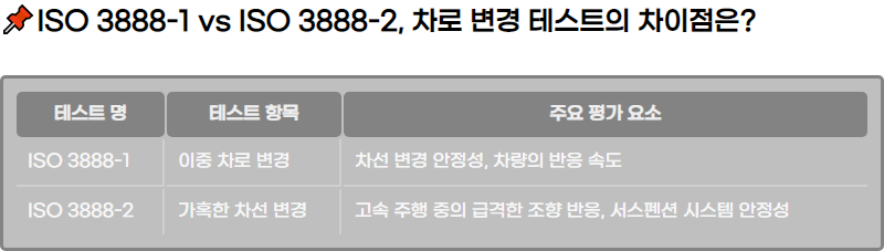| ISO 3888-1 | μ΄μ€ μ°¨λ‘ λ³κ²½ | μ°¨μ λ³κ²½ μμ μ±, μ°¨λμ λ°μ μλ |